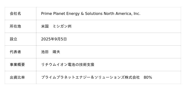 2026年2月6日「北米新会社設立のお知らせ」(プライムプラネットエナジー&ソリューションズ株式会社)
