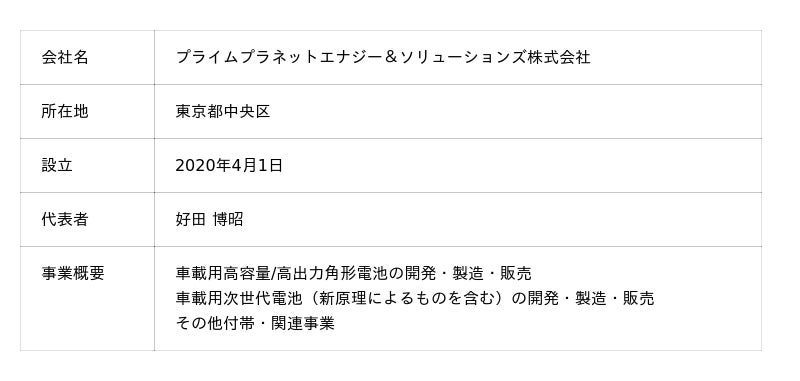 プライムプラネットエナジー&ソリューションズ株式会社(以下、PPES)と豊田通商株式会社(以下、豊田通商)は、PPESの北米子会社であるPrime Planet Energy & Solutions North America, Inc.(以下、PPESNA)に対し、豊田通商が米国現地法人(Toyota Tsusho America, Inc.)を通じて3月31日に20%の出資を行ったことをお知らせいたします。