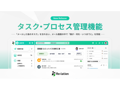株式会社インゲージ(本社:大阪府大阪市、代表取締役社長:和田 哲也)が提供するコミュニケーションプラットフォ-ム「Re:lation(リレーション)」は、新機能「タスク管理・プロセス管理」をリリースしたことをお知らせいたします。これにより、従来別々のツールで行われていた「顧客対応」と「進捗管理」の一本化を実現することで、『メールは見るが、タスク管理ツールは開かない』現場のラストワンマイルを解消し、業務効率化に貢献いたします。