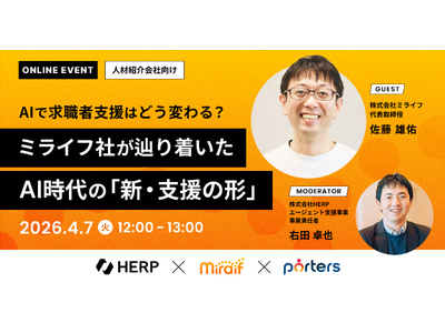 人材ビジネス向けマッチングシステムを提供するポーターズ株式会社(東京都港区、代表 西森 康二)は、株式会社HERPと株式会社ミライフ共同で「