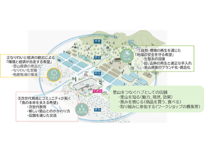 また、イオンはこれまで、35年間にわたり「イオン ふるさとの森づくり」を通じて、地域の 皆さまとともに植樹活動を続けてきました。本プロジェクトでは、こうした取り組みで培った知見を基に、自然と人の関係を地域の中で再構築し、里山を「守る」から「地域の価値創出につながる資源」へと再定義し、自然・経済・コミュニティが循環する仕組みの構築を目指します。