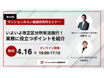 2022年にスタートした「マンションみらい価値研究所セミナー」は、今回で40回目を迎えます。節目となる今回は、好評をいただいている「改正区分所有法」シリーズの一環として、管理組合の実務に直結するポイントに焦点を当てます。