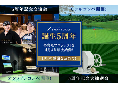 5周年記念Tシャツ」や「ロゴ入り記念ボール」を製作中です。会員様向けのノベルティや景品として展開するほか、今後はSMART GOLFのブランドアイテムとして、数量限定での一般販売も予定しております。