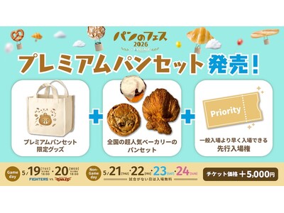 レジャー・エンタテインメントのチケット販売及び各種イベントの企画・運営等を行うぴあ株式会社と、パン好きのための検定試験「パンシェルジュ検定」を企画・運営する日販セグモ株式会社は、2026年5月19日(火)から24日(日)の6日間、北海道ボールパークFビレッジにて「パンのフェス2026 in Fビレッジ」を共同で開催いたします。
