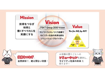 株式会社ジェイテクト(本社:愛知県刈谷市、取締役社長:近藤 禎人、以下「ジェイテクト」)は、企業の使命としてMission、2030年までに目指す姿としてVision、全社員共通の価値観としてValueを掲げ事業活動を推進しています。ジェイテクトグループの価値観であるValue「Yes for All, by All!みんなのために、みんなでやろう」を、日々の判断や行動に結びつける手引きとして、新たに「行動規範」を策定しました。