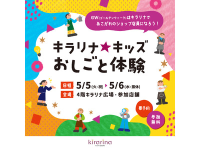 株式会社京王SCクリエイション(本社:東京都渋谷区、代表取締役社長:小堺 健司)は、京王井の頭線吉祥寺駅直結の商業施設「キラリナ京王吉祥寺」における、ゴールデンウィークお子さま向け企画として、施設やテナントのお仕事に挑戦できる「キラリナ★キッズおしごと体験」を開催いたします。