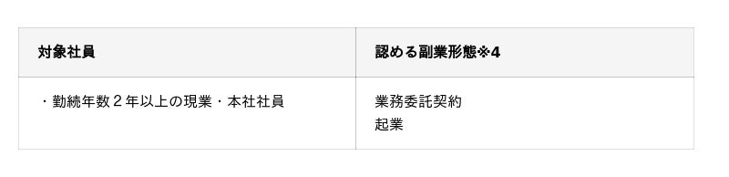※4 本業に支障がでないよう、労務提供上支障がある業務、業務上の秘密が漏洩する業務、競合により会社の利益が損なわれる業務、会社の利益や信用が損なわれる業務や信頼関係を破壊する業務等は禁止とします。