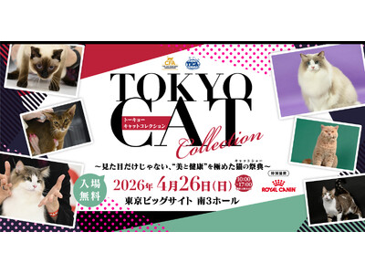 栄養学に基づいて犬と猫の健康を実現する企業(Health Through Nutrition Company)として、プレミアムペットフード および食事療法食を展開するロイヤルカナン ジャポン(本社:東京都港区、社長:日下部 真一、以下、ロイヤルカナン)は、2026年4月26日(日)に東京ビッグサイト(東京都江東区)にて、初開催となるキャットショー「TOKYO CAT COLLECTION(トーキョー キャット コレクション)」(主催:TOKYO CAT COLLECTION実行委員会)に特別協賛いたします。