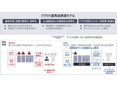 デジタルサービスの基盤としてクラウド活用が加速する中、企業や組織には高品質・低コスト・高効率の運用体制の実現が求められています。しかし、従来はサービス品質やクラウド利用コストの指標設定・管理が属人的であり、多大な労力がかかっていました。また、IT人財不足が深刻化し、ノウハウの継承や安定運用の維持も大きな課題となっています。DX(デジタルトランスフォーメーション)の加速やIT活用の高度化が進む現在、現場負担を軽減し、持続的な運用最適化を可能とする新しいクラウド運用モデルが求められていました。