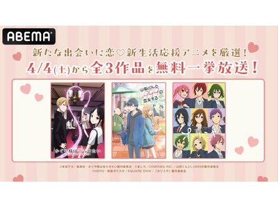 新しい未来のテレビ「ABEMA」は、2026年4月4日(土)より、「新たな出会いに恋(ハート)新生活応援アニメ」と題し、出会いの春にぴったりなラブコメアニメ3作品の無料一挙放送を実施いたします。
