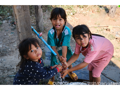 整備された給水施設を利用し、安全な水を使う子どもたち(カンボジア王国ラタナキリ州)