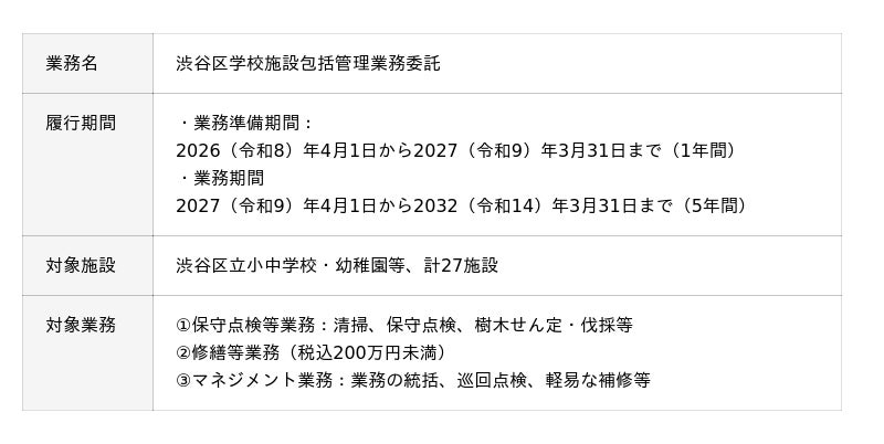 出典:「渋谷区学校施設包括管理業務委託仕様書」(2025年12月8日)(渋谷区)