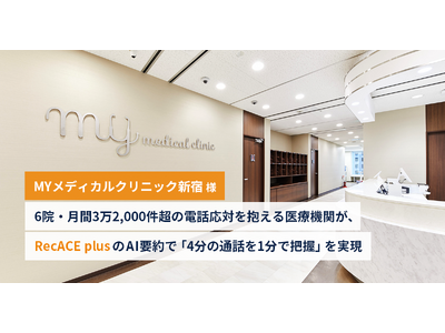 株式会社アセンド(本社:東京都新宿区、代表取締役:佐藤 博)は、医療法人社団MYメディカルが運営するMYメディカルクリニック新宿(所在地:東京都新宿区、理事長:水谷 佑毅)における「RecACE plus(レックエースプラス)」の導入成果を公開しました。