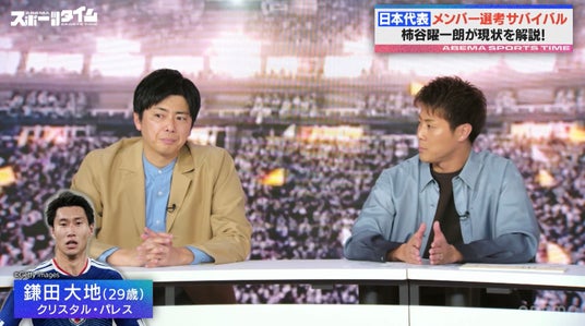 本放送回では、コメンテーターを務める元サッカー日本代表の柿谷曜一朗氏に加え、ゲストにお笑いコンビ・コットンの西村真二が出演し、男子サッカーの話題をお届けしました。