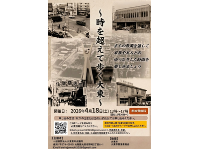 一般社団法人大東青年会議所(理事長:保村 涼太、所在地:大阪府大東市野崎2丁目6-1 )は地域の歴史や文化を体感し、まちへの当事者意識を醸成することを目的として、2026年4月18日(土)に体験型まち歩き事業「~時を超えて歩く大東~」を開催いたします。