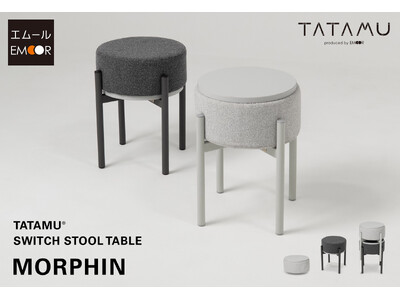 トランスフォーム家具ブランドTATAMU(R)から、暮らしのシーンに合わせてテーブル⇔スツールと役割を切り替えることができるスイッチ家具「MORPHIN(モーフィン)」が新発売。スタッキングにも対応。