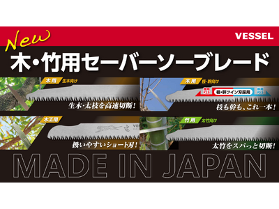 ベッセルは、こうした現場ごとの切断ニーズに応えるため、木用/竹用セーバーソーブレードシリーズのラインアップを拡充しました。今回の追加により、狭所作業に適した木工用ショートモデル、生木・太枝に適した木用生木向け、枝も幹も1本で使い分けしやすい木用枝幹向け、太竹切断に対応する竹用太竹向けがそろい、切る対象や作業シーンに応じて、より選びやすい構成となりました。