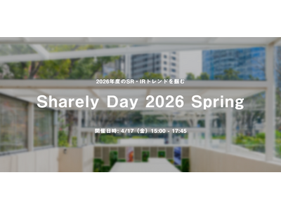 Sharely株式会社(本社:東京都港区、代表取締役:西條 晋一)が提供する株主総会総合支援サービス「Sharely(シェアリー)」は、今回で5回目となるSR/IRイベント「Sharely Day 2026 Spring」を4月17日(金曜日)午後に開催することをお知らせします。