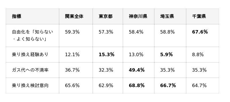 本調査では、2017年の都市ガス小売全面自由化から9年が経過した現在も、関東在住の都市ガス利用者の