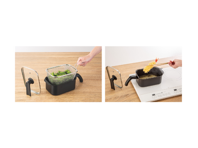 1台で煮る・炒める・揚げる・和える・炊く・茹でる・沸かすの7種類の使い方ができる、マルチな調理アイテムが、角型になってより使いやすくなりました。