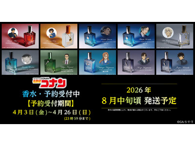 名探偵コナンより、赤井秀一・世良真純・大和敢助・諸伏高明・降谷零・諸伏景光・風見裕也・萩原千速・萩原研二・松田陣平をイメージした香水の再販が決定、ゼロジーアクトオンラインストアにてご予約受付を開始。