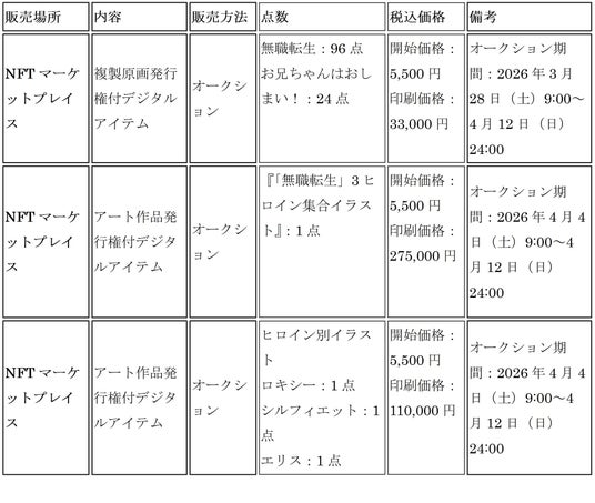 本プロジェクトでは、人気アニメ作品『無職転生 ~異世界行ったら本気だす~』および『お兄ちゃんはおしまい!』の「複製原画発行権」付きデジタルアイテムを販売し、その収益の一部を原画保管費用として還元。ファンが楽しみながらアーカイブ活動に直接貢献できる、持続可能なエコシステムを構築します。