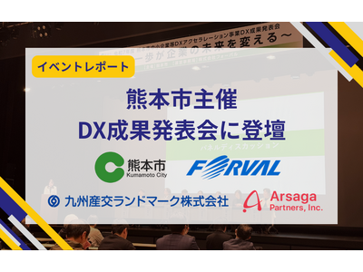 企業のDXを促進するアルサーガパートナーズ株式会社(本社:東京都渋谷区、代表取締役会長兼CTO:小俣泰明、代表取締役CEO:渡邉純平、以下「アルサーガパートナーズ」)は、熊本市が主催し、株式会社フォーバル(本社:東京都渋谷区、代表取締役社長:中島將典、以下「フォーバル」)が運営事務局を務める「熊本市中小企業等DXアクセラレーション事業」において、伴走支援を実施いたしました。