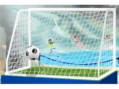 温泉スライダーがブルーロックカラーの“青色”に!スライダーをすべるだけでシュートを打っているかのような写真が撮れる!