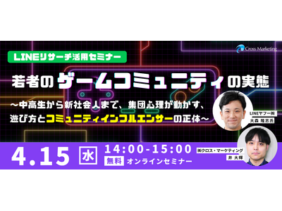 名称:【LINEリサーチ活用セミナー】若者のゲームコミュニティの実態 ~中高生から新社会人まで、集団心理が動かす、遊び方とコミュニティインフルエンサーの正体~