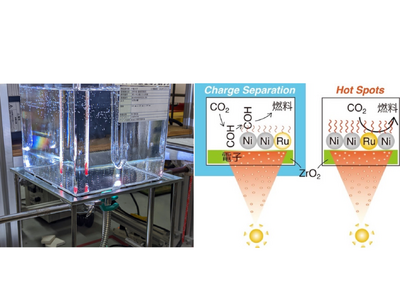 千葉大学大学院融合理工学府博士前期課程の佐々木 将人氏、博士後期課程の大弓 知輝氏、原 慶輔氏(研究当時)、同大大学院理学研究院の泉 康雄教授、中国成都バイオガス科学研究所の張 宏偉准教授の研究グループは、二酸化炭素(CO2)を天然ガスや都市ガスの主成分であるメタン(CH₄)などの燃料に変換する光触媒反応において、長年の謎であった「光で生じた電子(注1)による反応」と「ホットスポット(注2)における反応」の役割を明確に識別・特定することに成功しました。
