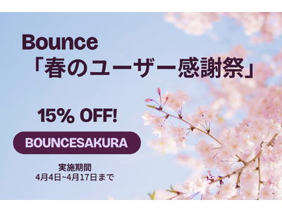 Bounce(バウンス)」を運営するBounce, Inc.(以下、Bounce)は、日頃のユーザーへの感謝を込めて、「春のユーザー感謝祭」を2026年4月4日から4月17日までの期間限定で実施いたします。