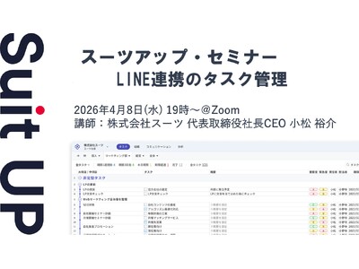 株式会社スーツ(所在地:東京都千代田区、代表取締役社長CEO:小松 裕介)は、2026年4月8日(水)19時から、当社代表の小松が講師を務めるスーツアップ・セミナー「LINE連携のタスク管理」を無料開催します。