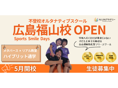 こうした社会課題に向き合う株式会社NIJIN(本社:東京都江東区、代表取締役:星野達郎)は、不登校オルタナティブスクール『NIJINアカデミー』のリアル教室“広島福山校”を2026年5月13日に開校することをお知らせいたします。