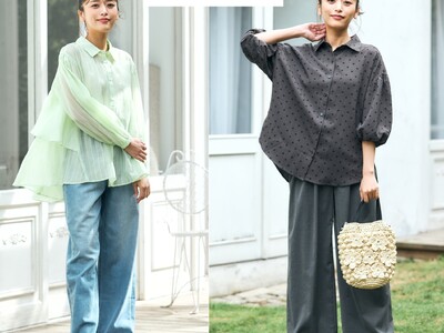 再生繊維「テンセル(TM)️リヨセル繊維」、右のブラウスには、