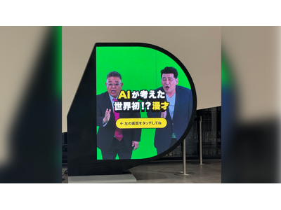 AIdeaLabがテレビ朝日とともに開発した『AIサンドウィッチマン』は、東京ドリームパーク3階アトリウムに設置された、来場者向けのインフォメーションボードです。「トイレはどこ」といった質問に答える館内情報の案内に加え、台本、音声、映像のすべてをAIが生成したAI漫才を見ることができます。