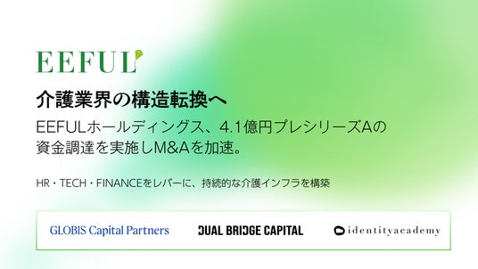 株式会社EEFULホールディングス(本社:東京都港区、代表取締役:森山穂貴)は、総額4.1億円の資金調達(プレシリーズA)を実施しました。本ラウンドはグロービス・キャピタル・パートナーズをリード投資家とし、Dual Bridge Capital、 Identity Academy (Future Identity Capital)の計3社が参加しました。