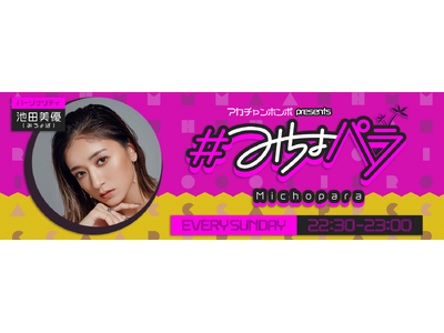 パーソナリティの池田美優(みちょぱ)さんは、今年2月に妊娠を発表。この度、妊娠・出産という人生の大きな節目を迎えるみちょぱさんをサポートする形で、4月から新たにアカチャンホンポの冠提供で『アカチャンホンポ presents #みちょパラ』のタイトルで放送いたします。