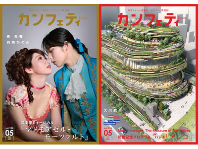 今月号の表紙は、音楽座ミュージカル『マドモアゼル・モーツァルト』から森 彩香 & 岡崎かのん、そしてこの春、高輪ゲートウェイに誕生した複合型ミュージアムMoN Takanawa: The Museum of Narrativesが彩ります。