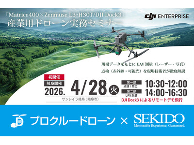 DJI(ディージェイアイ)正規販売代理店としてドローンビジネスの最前線を支える株式会社セキド(本社:東京都港区、代表取締役:大下貴之)は、株式会社プロクルー(本社:滋賀県長浜市、代表取締役:酒井正裕)と共催で、2026年4月28日(火)に岐阜県岐阜市で「産業用ドローン無料実演セミナー」を開催いたします。