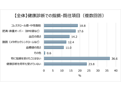 一方で、20代30代では指摘を受けたことがない層が約7割にのぼるものの、それと並んで「健康診断を何年も受けていない」層が3割を超えている実態も判明しました(20代34.4%、30代32.0%)。加齢とともに具体的な健康課題が顕在化する一方で、若年層では自身の数値を正確に把握できていない未受診層の存在が浮き彫りになっています。