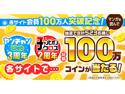 ヤンチャンWebとチャンピオンクロス、2つのサイトでそれぞれ100万コイン(合計200万コイン)山分けのビッグチャンス!