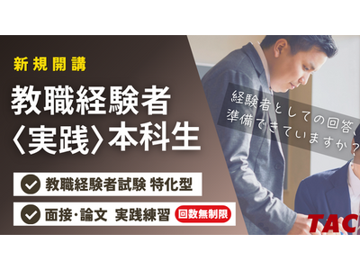 教員採用試験対策講座を展開しているTAC株式会社(東京都千代田区)は、2026年に教職経験者試験での受験をご予定の方を対象に、実践重視の経験者試験特化型【教職経験者<実践>本科生】を新規開講します。