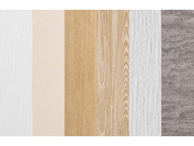 (画像:左から順にオフホワイト、ライトベージュ、ライトオーク、シャビーアッシュ、ホワイトウッド、モルタルグレーの壁紙カラー一覧)