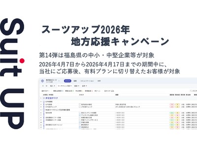 株式会社スーツ(所在地:東京都千代田区、代表取締役社長CEO:小松 裕介)は、「スーツアップ2026年地方応援キャンペーン」第14弾として、福島県の社員数100名未満の中小・中堅企業、スタートアップを対象に割引キャンペーンを実施いたします。