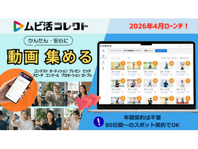 ウェブ開催の動画投稿コンテストやオーディション、コンクール、採用選考等で、動画データを簡単・安全に収集&管理ができる『ムビ活コレクト』を2026年4月1日からサービス提供開始!