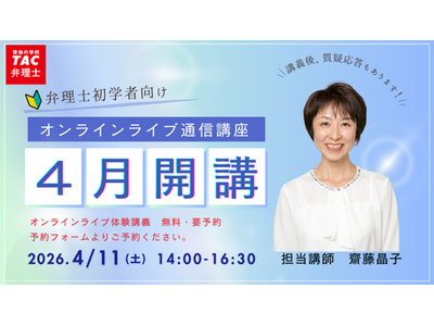 資格取得に向けた教育サービスを展開しているTAC株式会社(東京都千代田区)では、弁理士試験受験を検討されている皆様へ「基本講義 第1回 特許法」をオンラインライブ通信で開催します。