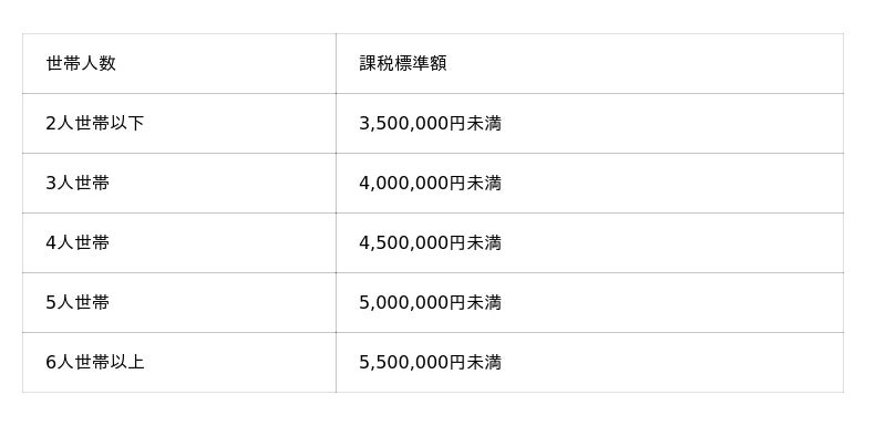 ◎令和7年度の「課税標準額」の世帯合算額が以下に当てはまる者(詳細は募集要項をご確認ください)