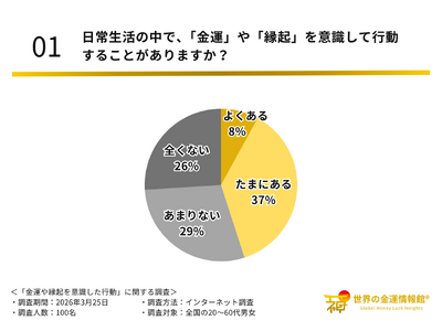 こうした背景を踏まえ、今回の調査では全国の男女を対象に、「金運や縁起を意識した行動」に関する調査を実施しました。