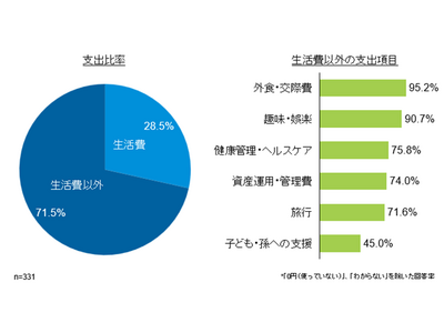 ■支出先/支出額:生活費以外の支出先は「外食・交際費」、月間支出額では「資産運用・管理」が最多