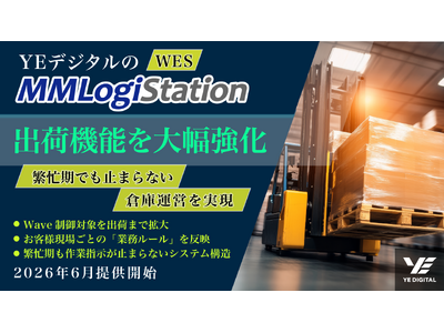 株式会社YE DIGITAL(本社:北九州市小倉北区、代表取締役社長:玉井裕治、以下「YEデジタル」)は、倉庫自動化システム(WES)「MMLogiStation」において出荷機能を強化し、2026年6月より提供を開始いたします。